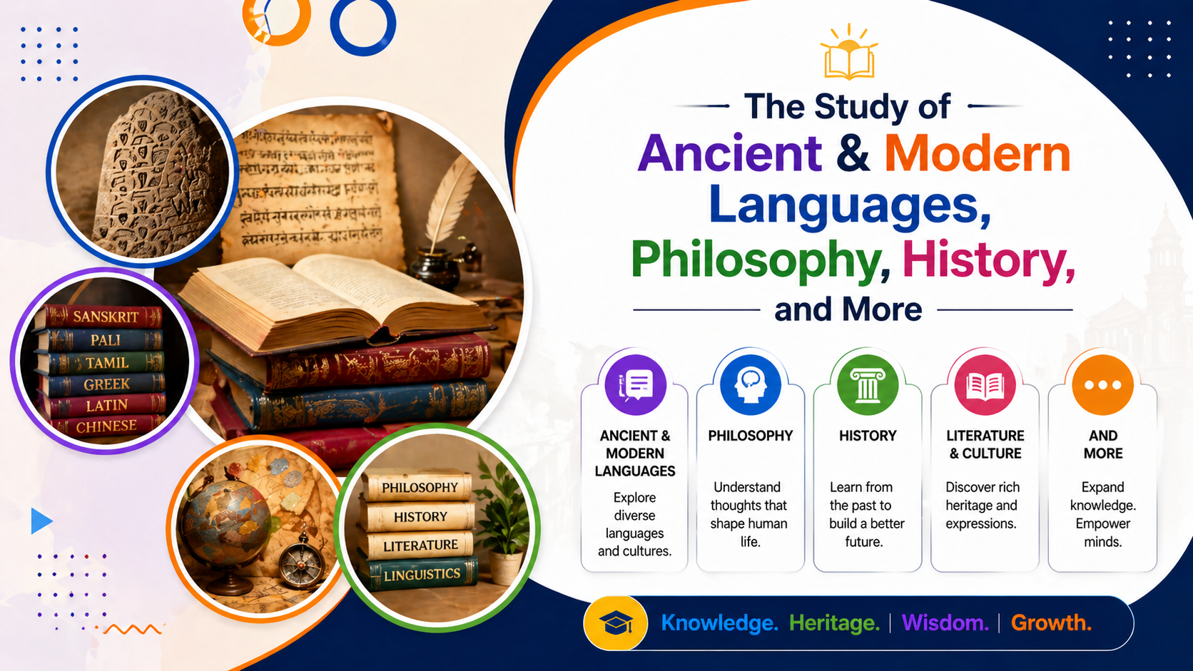 The study of ancient and modern languages, philosophy, history, and more. We take pride in offering top humanity courses from a dedicated and trained staff who know our previous culture and invention and help to bring and implement in the advance technology.